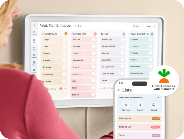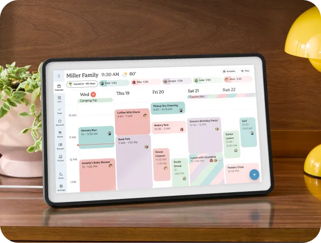 Skylight holds the schedules, the meal plans, the to-dos, and the grocery lists — so you're not the only one who knows what's happening, what's due, and what's for dinner.